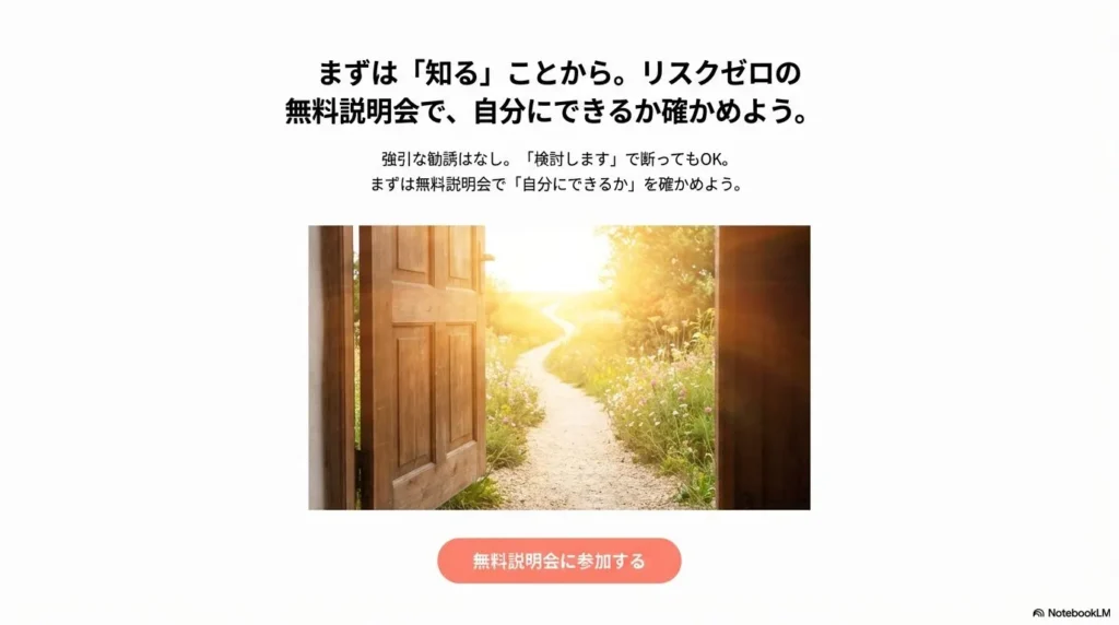 - ✅ 「楽して稼げそう」と期待しすぎた人が、説明会で現実(努力が必要)を知ってギャップを感じたから