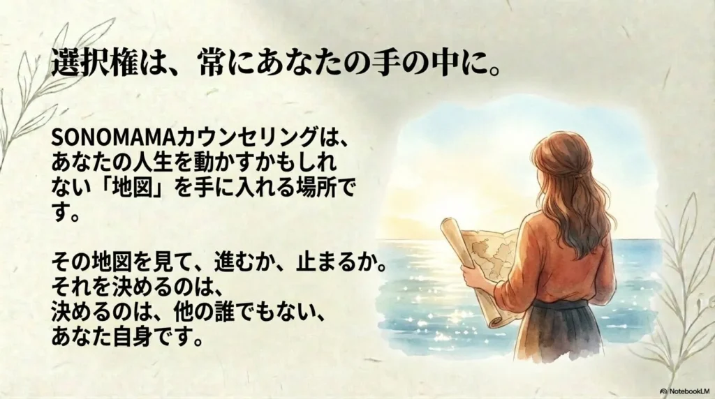ここまで読んでいただき、本当にありがとうございます。SONOMAMAのカウンセリングは、あなたが在宅ワークという新しい世界に自分を適応させられるか、プロの視点を借りて冷静に判断するための機会です。私自身、公式の指針や多くの体験談を整理する中で、情報の透明性が高まっていることを感じました。