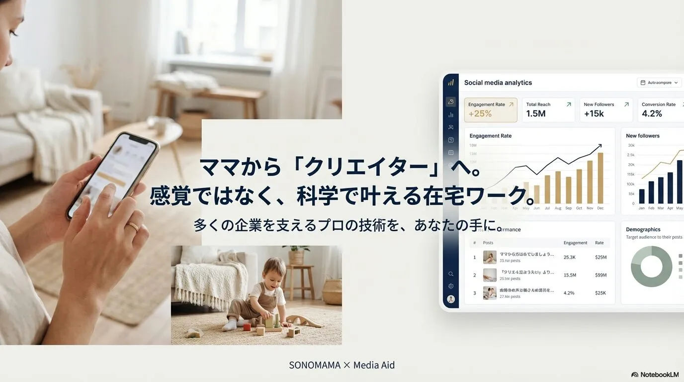 また、彼がSONOMAMAを立ち上げた背景には、現代社会における「ママの可能性の埋没」に対する問題意識があるようです。どんなに優秀な女性でも、出産を機に社会との接点が薄れ、自分のスキルを活かす場所を失ってしまう。そんな現状を、時間と場所を選ばない「SNS」という手段で打破したい。そんな熱い想いが、スクールのカリキュラムの根底に流れています。