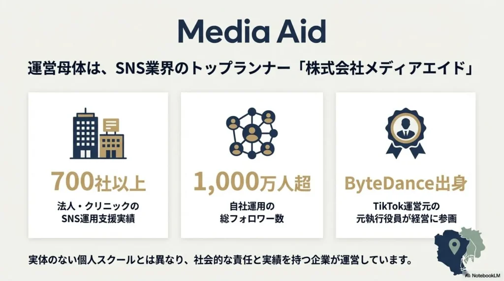 まず特筆すべきは、彼らが「教える専門」の会社ではないという点です。メディアエイドの主力事業は、東証プライム上場企業から街の個人クリニックまで、すでに700社以上の公式SNSアカウントを実際に運用し、売上を劇的に伸ばしてきた「運用代行」のプロフェッショナル集団なんです。プロの野球選手が野球教室を開いているのと同じで、彼らは「今、現場で何が起きているか」「どうすれば本当にフォロワーが動くのか」という生きた情報を常に握っています。本を読めば載っているような古い情報ではなく、今朝のアルゴリズムの変化にすら対応できるノウハウを、私たち主婦に提供してくれているんです。これって、実はすごい贅沢なことなんですよ。
