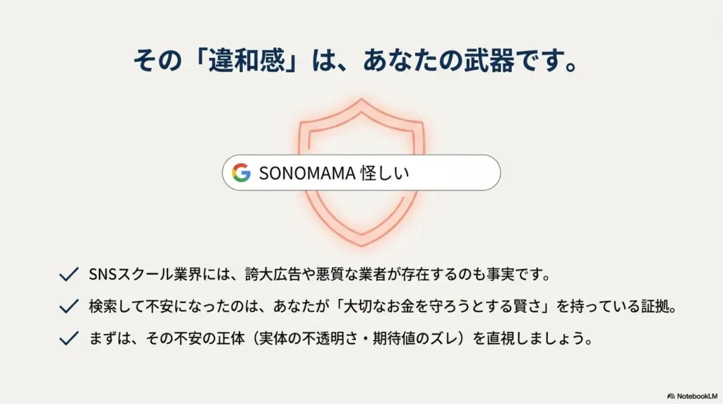 つまり、怪しさの正体は「実体の不透明さ」ではなく、「期待値とのズレ」や「業界全体の悪評の巻き添え」であると言えるでしょう。