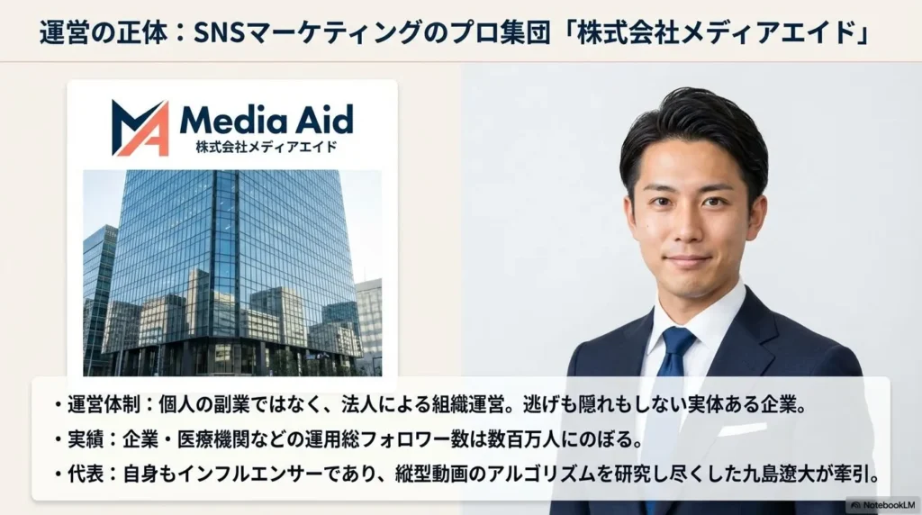 代表の九島遼大氏は、自らもインフルエンサーとして活躍し、TikTokをはじめとする縦型動画のアルゴリズムを徹底的に研究されている方です。