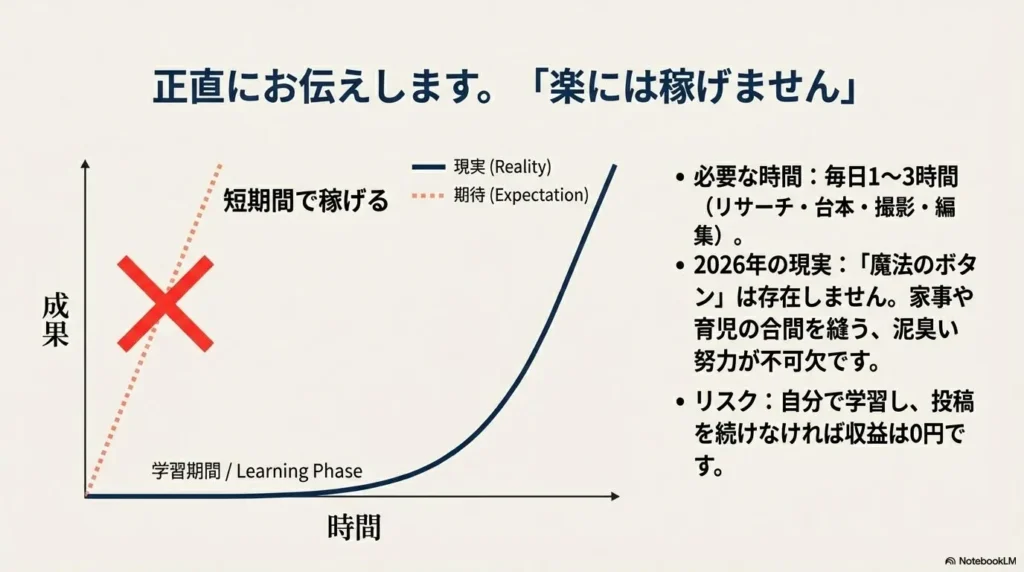 - ✅ 作業時間の確保(毎日1〜3時間程度)が最大の壁になる