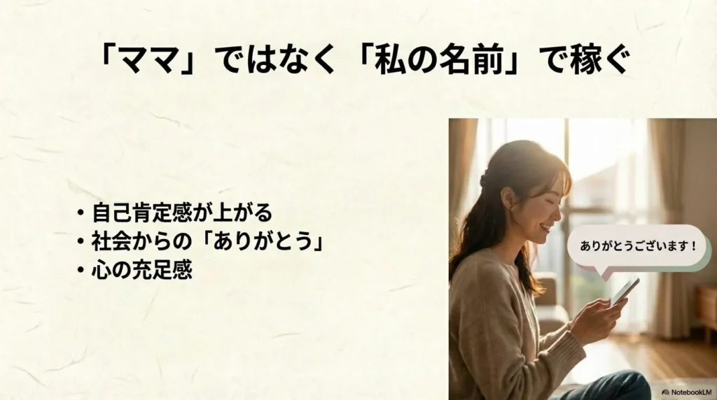 この喜びが、家事や育児への活力にも繋がっていくんです。忙しいママにこそ必要なのは、単なるお金だけでなく、この「心の充足感」なのかもしれませんね。実際に私も、収益が出た時に仲間から「おめでとう!」と言われた瞬間、涙が出るほど嬉しかったです。
