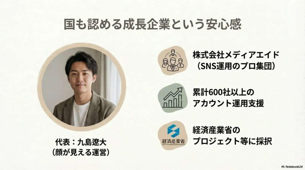 彼らは、大手企業や有名インフルエンサーなど、累計600社以上のアカウント運用を支援してきた、SNSマーケティングの超エリート集団なんです。しかも、2026年に入り、さらにその活動は加速しています。経済産業省のプロジェクトへの参択や海外進出など、ニュースでも取り上げられるほどの信頼性があるんです。