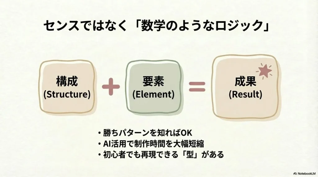 「センスがないから…」と不安な方も大丈夫。九島氏のノウハウは、センスではなく「数学のようなロジック」です。Aという構成にBという要素を加えればCの結果が出る、という再現性の高い「型」を教えてくれるので、初心者でも迷いなく投稿を作ることができます。